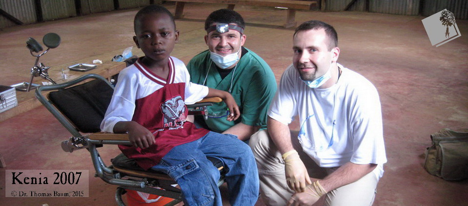 2007 führten wir, Dr. Thomas Baum und Dr. Marco Mathys, unseren ersten gemeinsamen Hilfseinsatz durch. Von einer Kollegin angestachelt und ohne wirkliche Ahnung, was uns erwarten würde, reisten wir frohen Mutes hoch motiviert und voll bepackt für die damalige "Arzt- und Zahnarzthilfe Kenia e.V." erstmals nach Afrika.