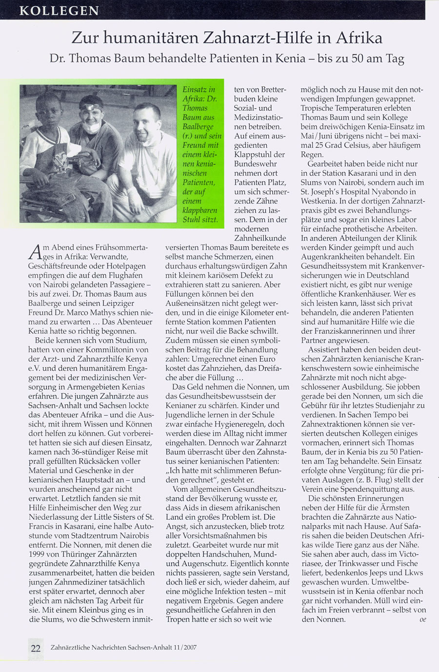 - Artikel Zahnärztliche Nachrichten Sachsen-Anhalt vom November 2007
