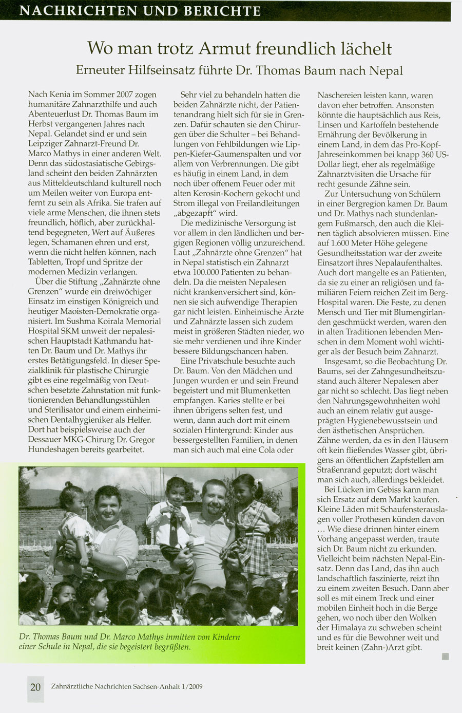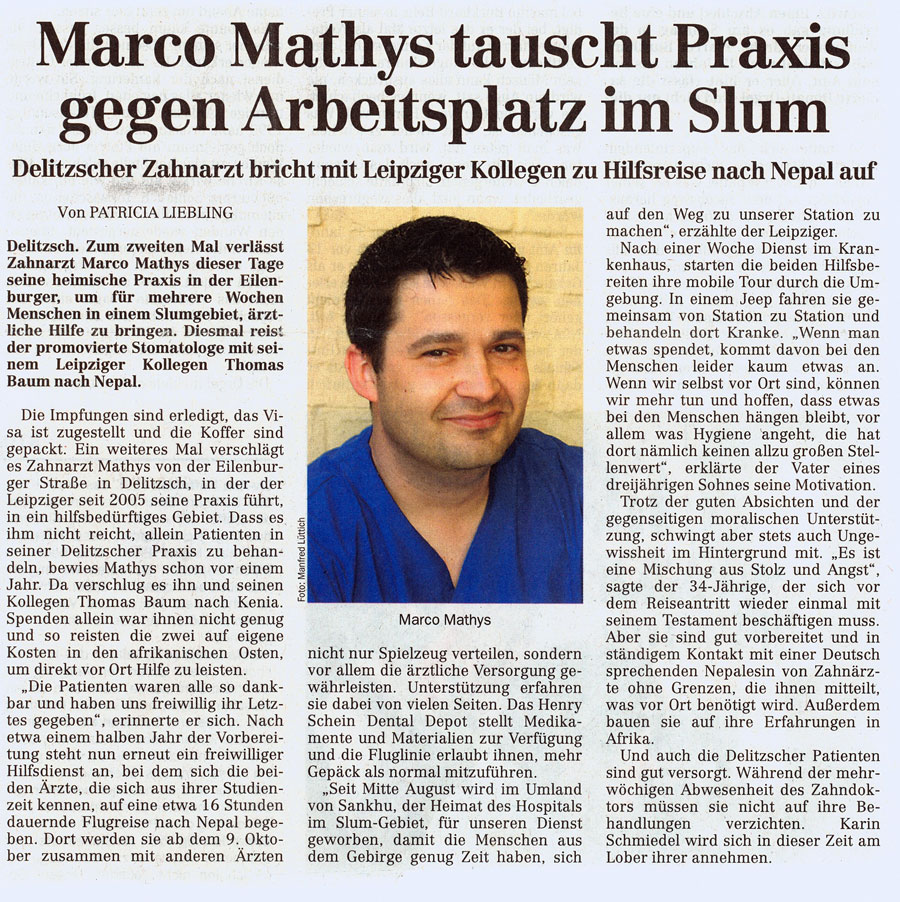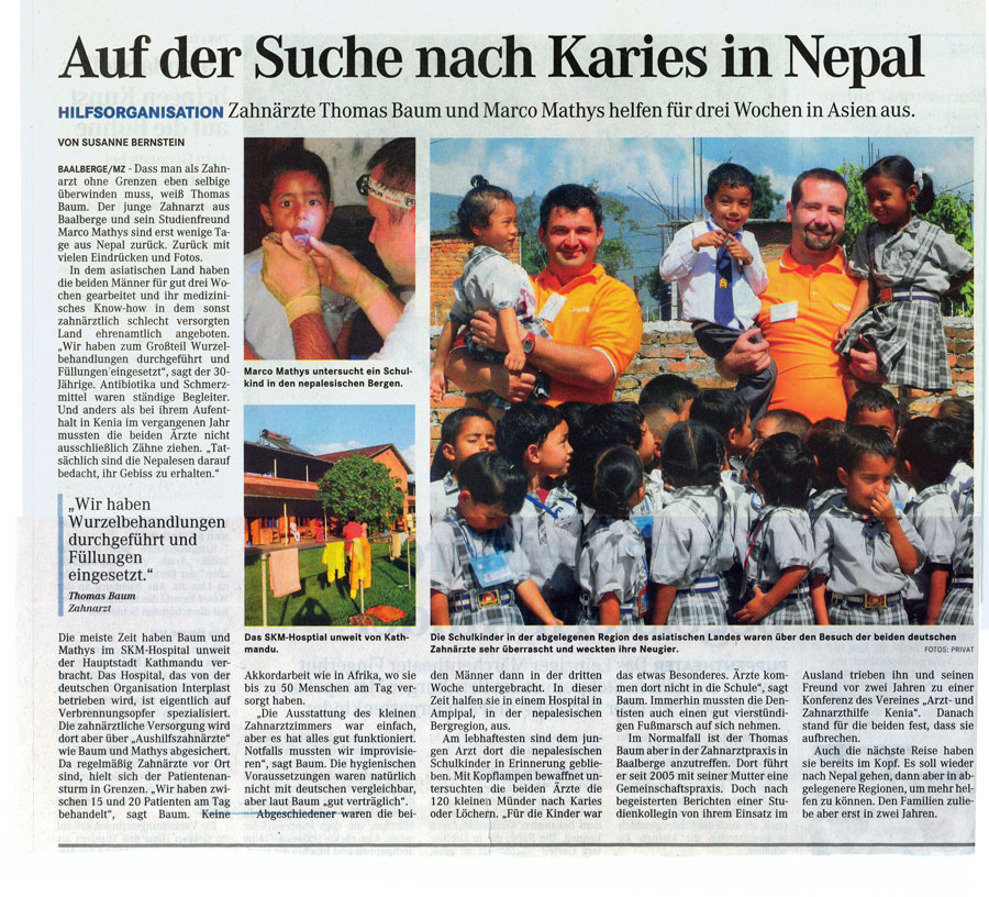 An zwei Arbeitsstätten in Kathmandu und später in der berühmten "Nepalklinik" in der Nähe von Pokhara lernten wir die scheinbar völlig andere Welt der Hindus und Buddhisten am Fuße des Himalaya kennen. Sowohl in den Krankenhäusern als auch in Außeneinsätzen und Schuluntersuchungen durften wir den ebenso herzlichen wir freundlichen Nepali vor teilweise gigantischer Kulisse zahnmedizinisch weiterhelfen.